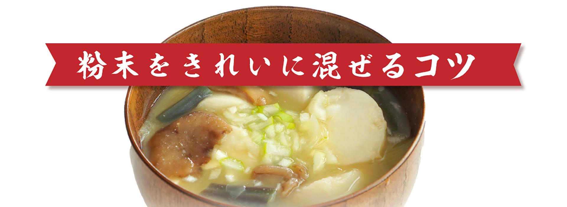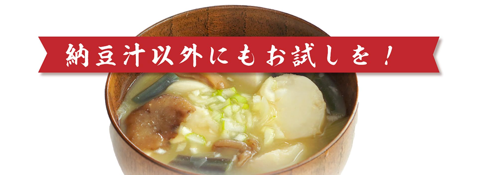 いつものお味噌汁のお椀に、粉末納豆を一人分10g程度混ぜて手軽に楽しむ納豆汁もおすすめです。
